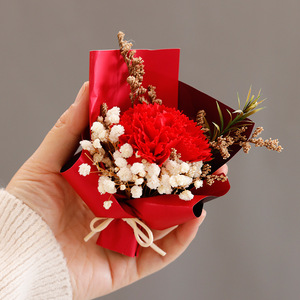 康乃馨满天星迷你小花束香皂花仿真花伴手礼装饰摆件母亲节送妈妈