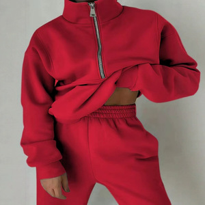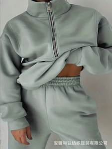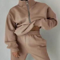 ヨーロッパとアメリカのファッションカジュアルスポーツホームルーズで快適なジッパーフリースニットスウェットシャツとスウェットパンツの女性用ツーピース
