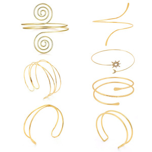 クロスボーダー卸売ヨーロッパとアメリカのファッションハンドジュエリーセット幾何学的なライン波状オープンアームリングクロス多層開口部調整