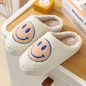 新しい笑顔韓国語版秋と冬の綿スリッパ男性と女性のカップルのための家庭用屋内かわいい厚底漫画滑り止めスリッパ