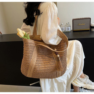 新しいトラベルフォレストスタイル多用途わら織り大容量トートファッションビーチシーサイド織りショルダー