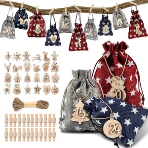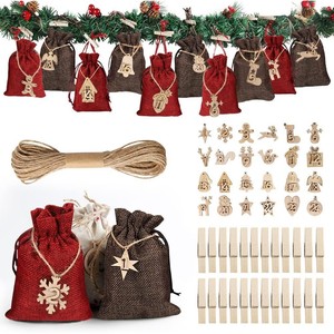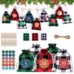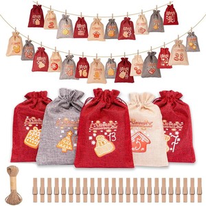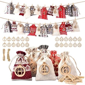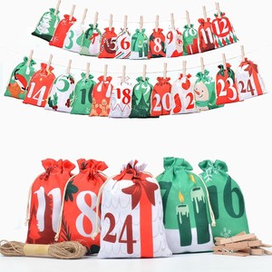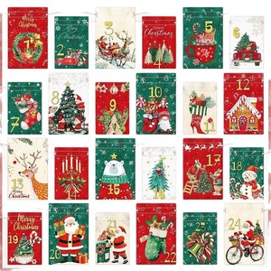 2025 クリスマスアドベントカレンダーカウントダウンデジタルイミテーションリネンギフトバッグクリスマスセット巾着包装袋