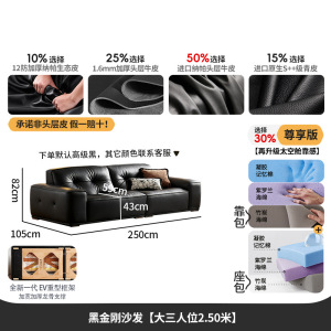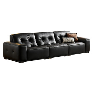 Tongyu ティーブラックダイヤモンドソファリビングルームストレートミッドセンチュリースタイル 2025 レトロビッグ黒牛豆腐ブロックレザーソファ