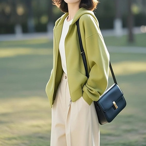 2025火小个子设计感百搭高级小众不撞款绿色卫衣外套女早春新款