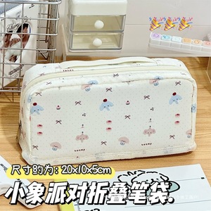 文房具新しい象パーティー楽園折りたたみ鉛筆バッグインかわいい漫画プリント高価値学生筆箱
