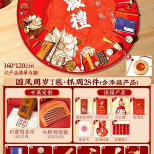 【無料ワインシール】中国風一歳ギフトレッドカーペット+一歳ギフト28個【絶妙なギフトボックス】