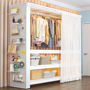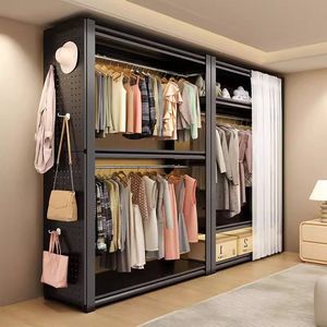 棚ワードローブ家庭用寝室レンタルルーム衣類収納シンプルな組み立て床コーナー鋼衣類ラック