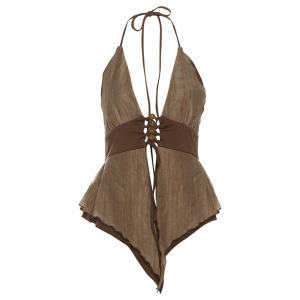 2025 ヨーロッパとアメリカの新しい夏のクロスボーダー中空ホルターネックバックレススリムトップ不規則なハイウエストファッションスカート
