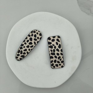发夹新款米色豹纹时尚气质皮革夹子刘海夹简约边夹批发头饰