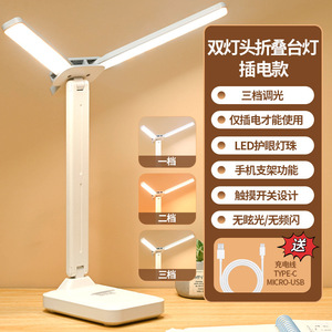 大学生の目の保護と勉強用のテーブルランプ、寮用の特別な充電、充電式とプラグインの両用ベッドサイドダブルヘッド読書デスク、卸売なし