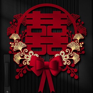 ワインレッドの立体弓ハッピーワード-愛の二重幸福_ワインレッドの弓ハッピーワード