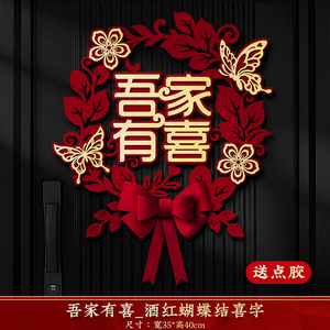結婚式のドアの立体リボン、結婚式の言葉、女性の寝室、新しい家の装飾、結婚式の部屋のレイアウトのドアステッカー