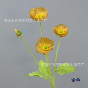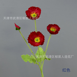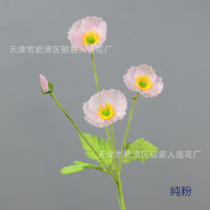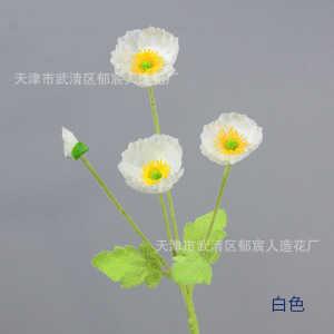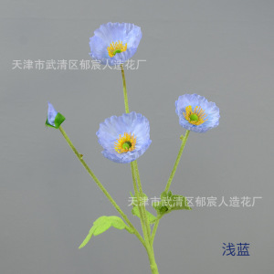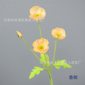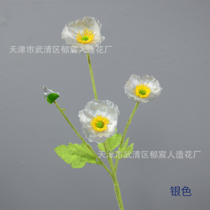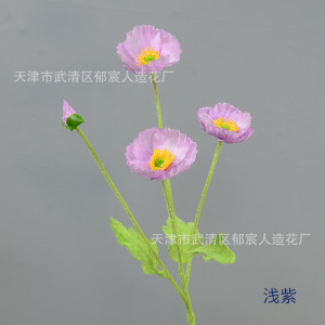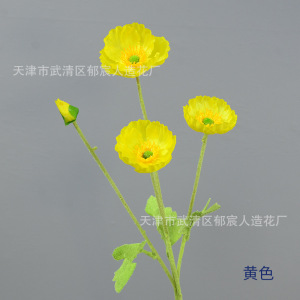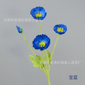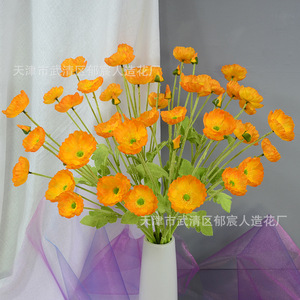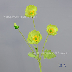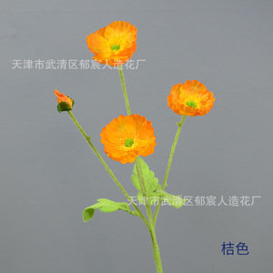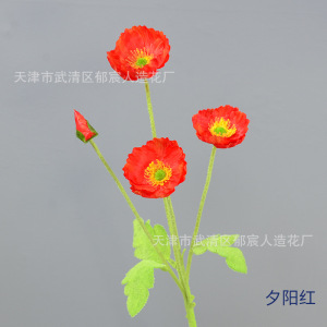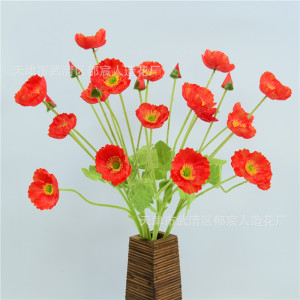 植绒虞美人单枝婚庆仿真绢花4头罂粟花家居装饰花 花瓶人造花