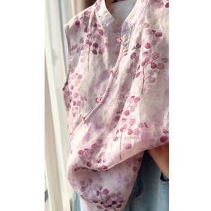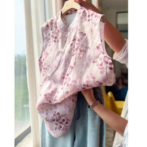 強くお勧めします!雰囲気があってリラックス!シンプルで爽やかで超格好良い、個性的で美しいトップス、中国風のピンクの斜めの襟のベスト