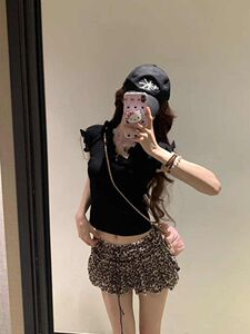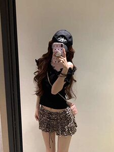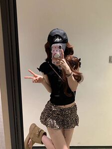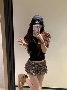 レトロヒョウ柄巾着スカート女性の夏の露出防止パンツスカートホットガールハイウエストスカートデザイン A ラインスカート