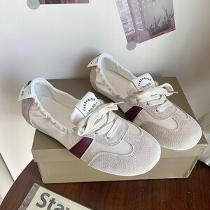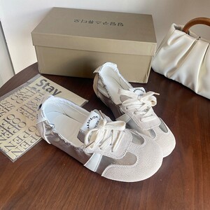 フレンチバレエトレーニングシューズレディースフラット2025夏新作レースアップ通気性スリッポン白靴ファッションシューズ