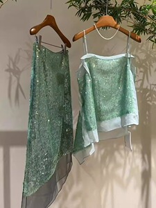 250511 新しい夏の無地キャミソールトップススリム気質社交界のエレガントなスタイルの女性のスカートスーツ