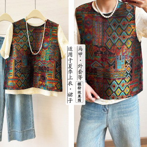 《FS094秘境剪影》仿宋锦马甲旗袍布料提花织锦汉服服装面料厂家