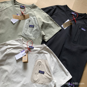 クロスボーダー貿易 Patag バタ アウトドア 速乾 Tシャツ 男女兼用 通気性 ドレープ シワ防止 ラミネート ポケット 半袖 男女兼用