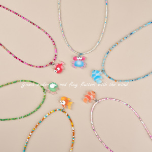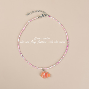 ドーパミン子供の鎖骨チェーン漫画小魚ネックレス女の子甘いビーズチェーンガールスタイルボヘミアンネックレス
