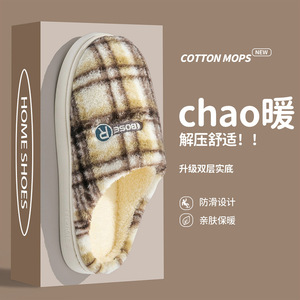 カップル秋と冬の綿 2025 スリッパ男性屋内家庭用暖かい厚みのある産後靴女性のための屋外毛皮のようなスリッパ