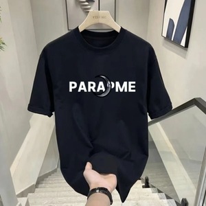 夏の新しいトレンディなパーソナライズされたプリント半袖Tシャツ男の子用韓国スタイルのルーズで多用途なカジュアルコーマコットントップ