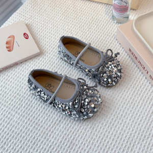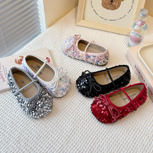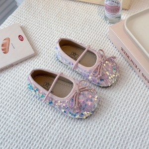 子供用の小さな香りの革靴、子供用シングルシューズ、夏の韓国風女の子用ソフトソールプリンセスシューズ、スパンコール付き浅い豆の靴