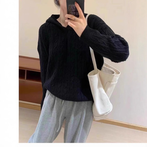 ツイストセーターレディースセーター2025秋冬フード付きレトロ和風レイジールーズソフトワックスニットセータートップ
