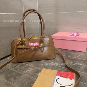 25 新しいレトロ miu シェルバッグポータブルボウリングバッグ大容量通勤ショルダークロスボディ半円形レディースバッグ