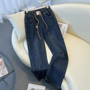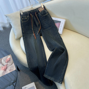 弹力牛仔裤女2025春秋季新款复古百搭高腰宽松休闲阔腿直筒裤子