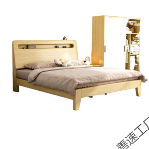 無垢材ベッド モダン シンプル 経済的 1.5 ダブルベッド 1.8 マスターベッドルーム ビッグベッド レンタルルーム 1.2 シングルベッド