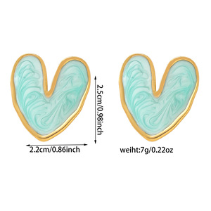 女性用クロスボーダー油絵風オイルドロップイヤリング、軽い高級感と高級感のあるステンレス製のハート型イヤリング、耳骨ネイル、ピアスイヤリング
