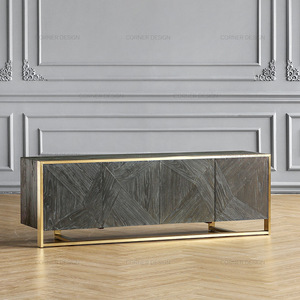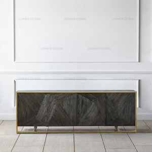 コーナーホームライト高級わびさびスタイルテレビキャビネットブラックデザイナーアメリカン無垢材ハイスタイルリビングルームホーム