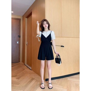 背带连体裤女夏季新款洋气小衫时尚显瘦设计感两件套装