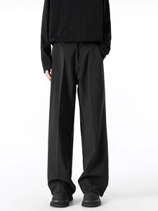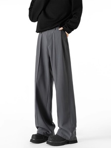 クリーンフィット ダークグレー シミターパンツ メンズ ドレープ感 高級 マイクロフレアパンツ ゆったり ストレート カジュアルパンツ