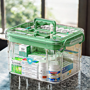 多層大容量家庭用透明家庭用薬箱応急処置薬ポータブル医療分類収納小型薬箱