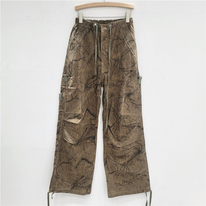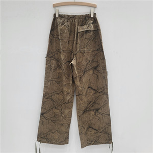 ヨーロッパとアメリカのニッチデザイン枯れ枝と葉のプリント巾着弾性ウエストルーズワイドレッグオーバーオールカジュアルパンツ女性用