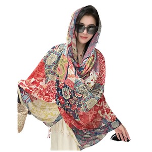 夏のエスニックスタイルのショール、レトロなバックル付き日焼け止めコットンとリネンのショール、ファッショナブルなブラウス、多用途のビーチスカーフ