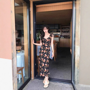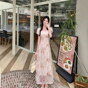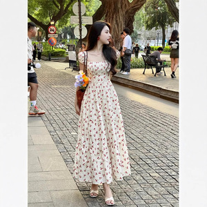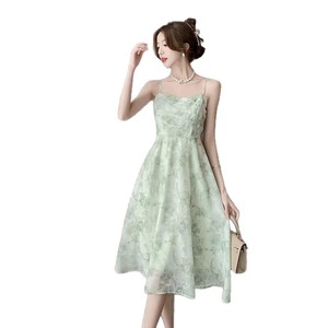 花柄スカート レディース シフォン花柄ドレス レディース 2025 夏 フレンチスイートフォレスト 初恋 優しい風 ウエストが見える