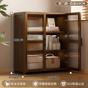 竹山下简易落地书柜带柜门客厅收纳新款书架落地家用多层放书本架