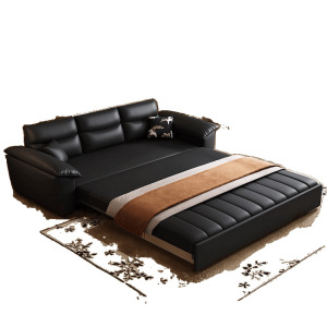钢琴键猫抓皮沙发床一体两用多功能可储物可折叠阳台书房沙发床