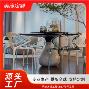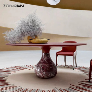 イタリア輸入天然大理石ラウンドダイニングテーブルホームヴィラレストランウォータードロップダイニングテーブル球体デザイナークリエイティブ