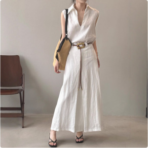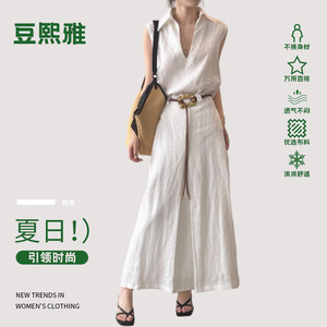 ラペルハイエンドリネンノースリーブスーツレディースサマースーツVネックシャツロングスカート気質ロングスカート