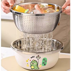 見栄えの良いステンレス製の排水バスケット、野菜洗い桶、キッチン家庭用果物洗いバスケット、米洗い桶、厚みのある洗面器