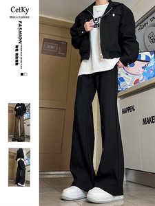 CetKy アメリカン ハイストリート クリーンフィット シルエット パンツ ブラック カジュアル パンツ メンズ レディース ストレート マイクロフレア バイブ パンツ