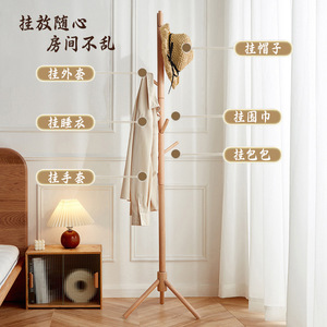無垢材洋服ハンガー床置き寝室洋服ハンガー家庭用洋服吊りロッドリビングルーム垂直洋服ラックバッグラックコートラック