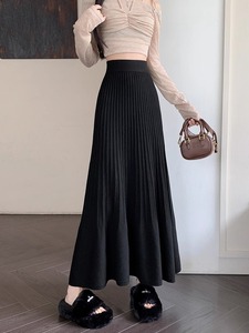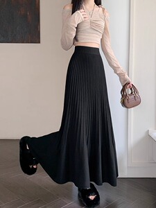 秋冬のエクストラロングスカート、優しく着痩せするプリーツスカート、ドレープアンブレラスカート、シンプルなミドル丈Aラインスカート