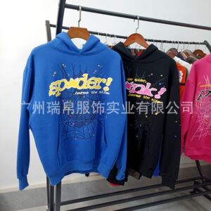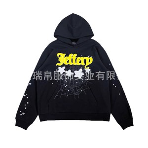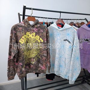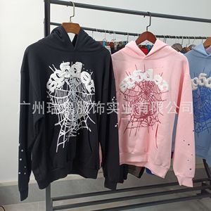 美潮重磅正規版Sp5derフーディ スパイダーウェブ55555発泡プリント裏起毛スウェットパーカー