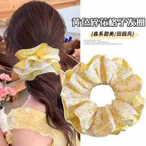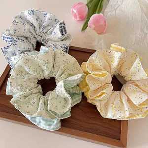 生地の爽やかなチェック柄の花柄ヘアゴム、韓国風ボールヘアゴム、スイートガール万能ヘアゴム