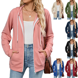 Amazon独立系2025欧米越境秋冬新作コントラストカラージッパーフード付きポケット長袖スウェットジャケット